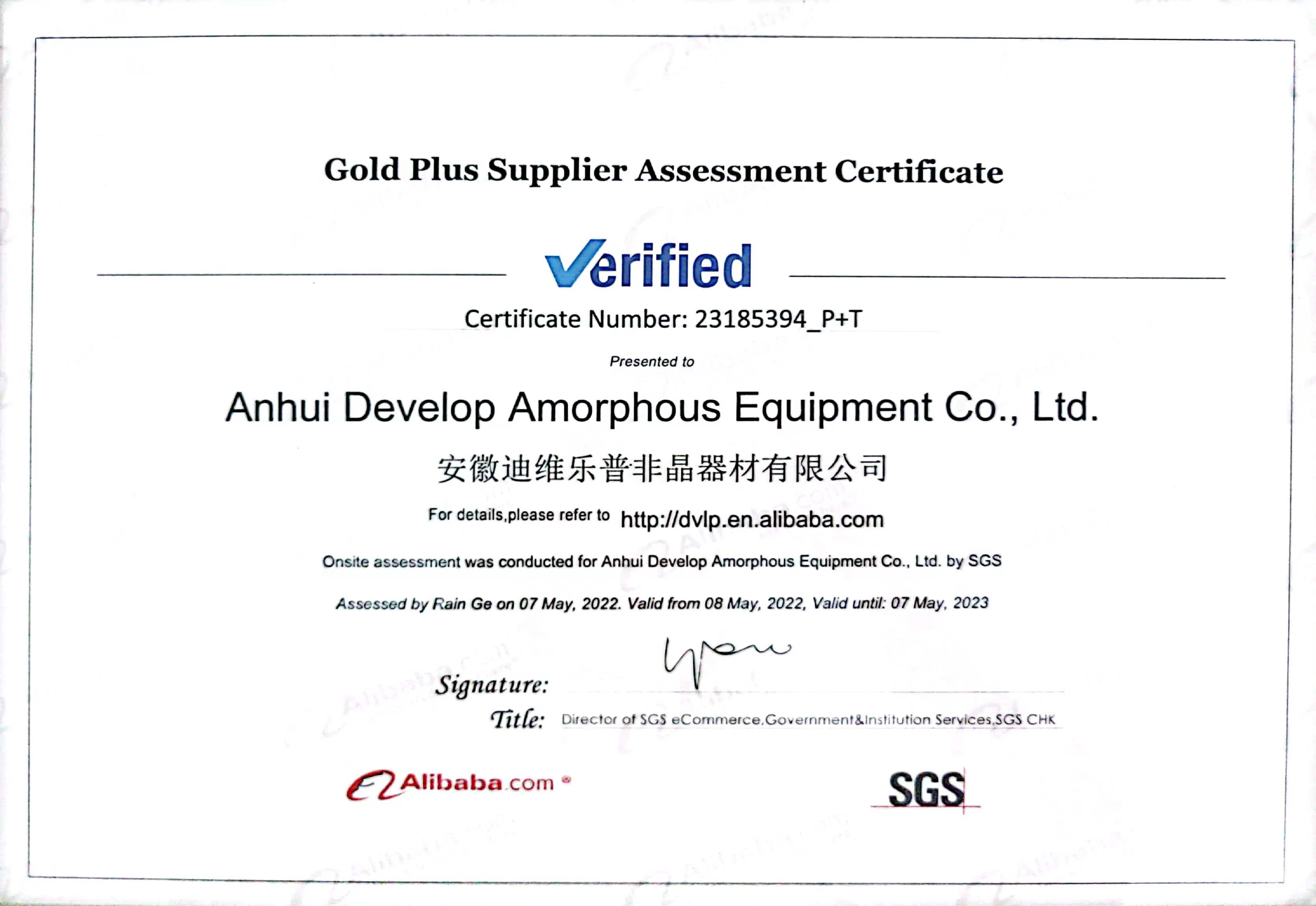 SGS质量体系证书