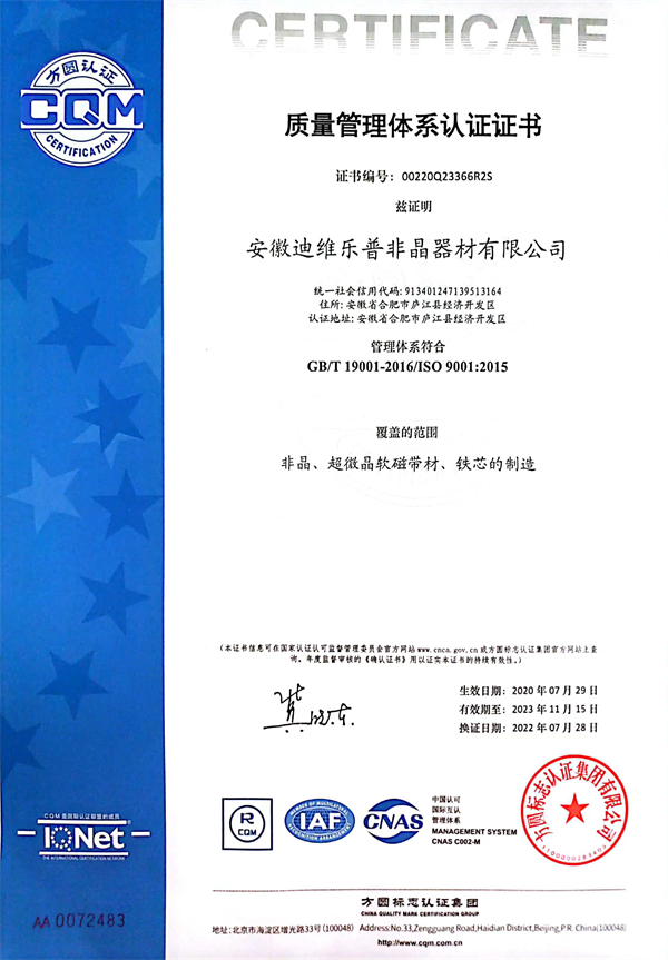 日前,安徽迪维乐普非晶器材公司接到巴西一客户视频电话,中方打样的精密互感器铁心性能满足设计要求。巴西客户开心的说:在中国好不容易找到一家能做出这款产品的企业,真的不简单!